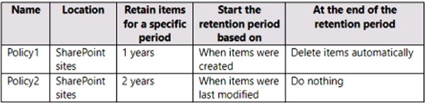 You have the retention policies shown in the following table.