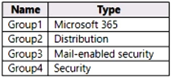 You have a Microsoft 365 E5 subscription that contains the groups shown in the following table.