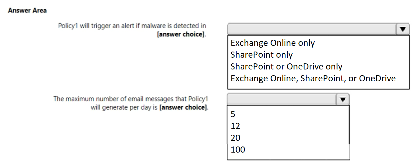 Which two threat policies should you configure in Microsoft Defender for Office 365? To answer, select the appropriate threat policies in the answer area.