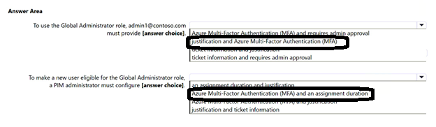 You make a user named admin1@contoso.com eligible for the Global Administrator role.