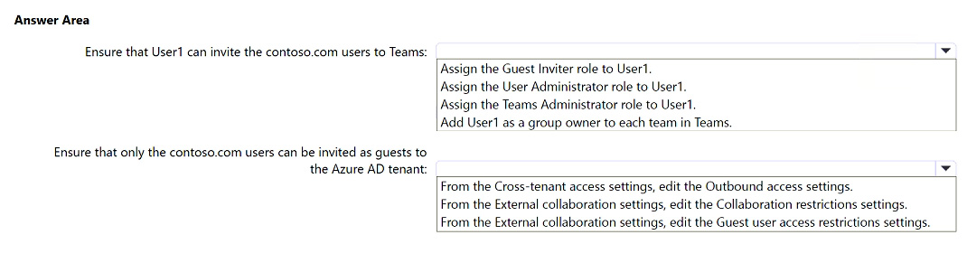 • Ensure that User1 can invite the contoso.com users to Teams.