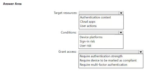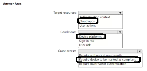 How should you configure the policy? To answer, select the appropriate options in the answer area.