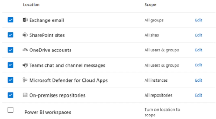 You are creating a data loss prevention (DLP) policy applied to the locations as shown in the following exhibit.