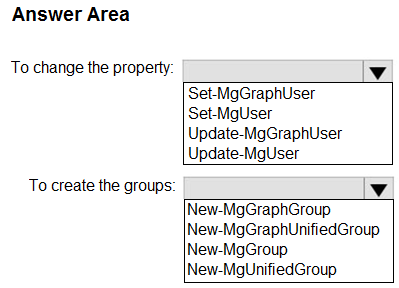 Which PowerShell cmdlet should you run? To answer, select the appropriate options in the answer area.