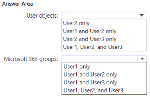 You have a Microsoft 365 E5 subscription that contains the users shown in the following table.