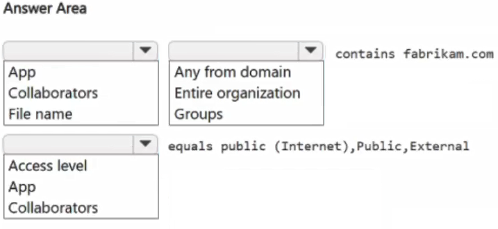 How should you complete the filter for the policy? To answer, select the appropriate options in the answer area.