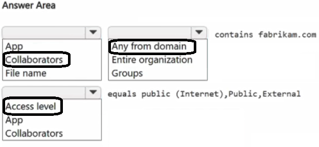 You need to create a file policy to generate an alert when a file is shared with a domain named fabrikam.com.