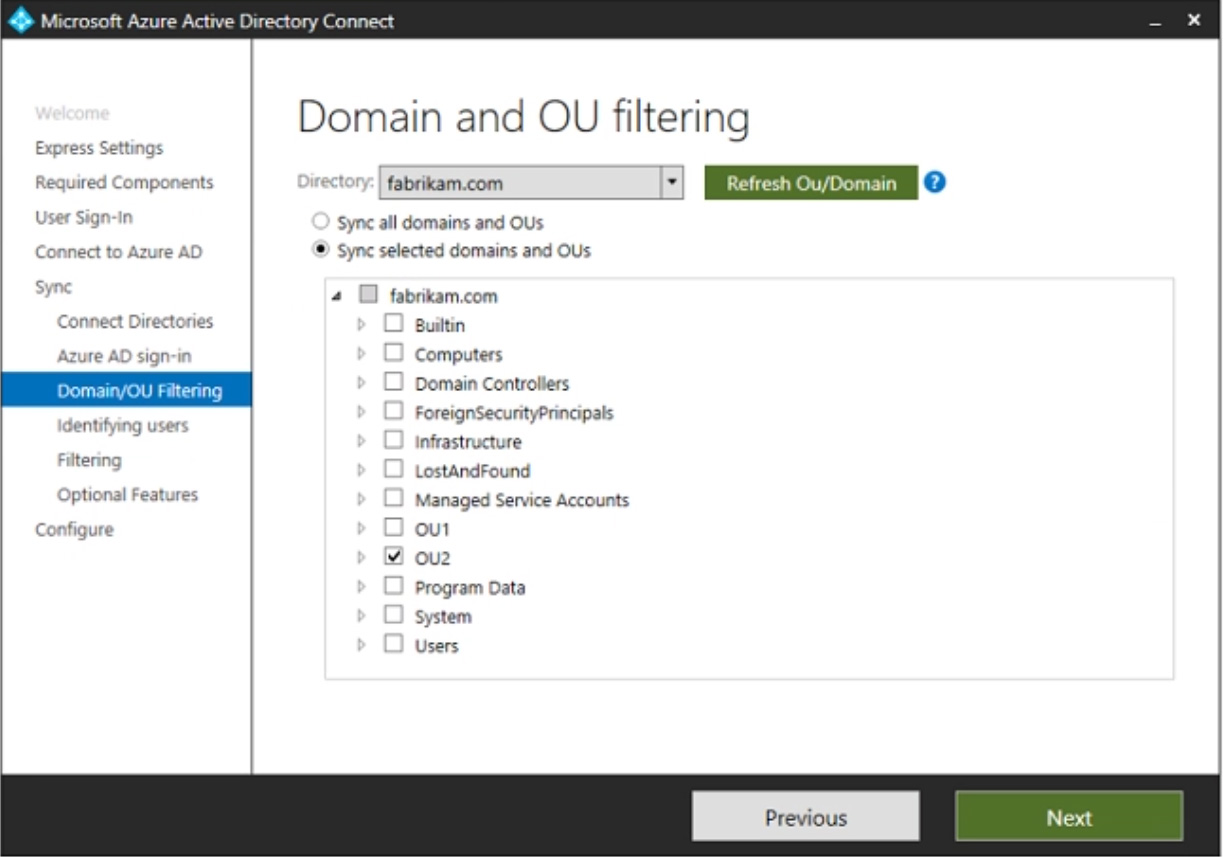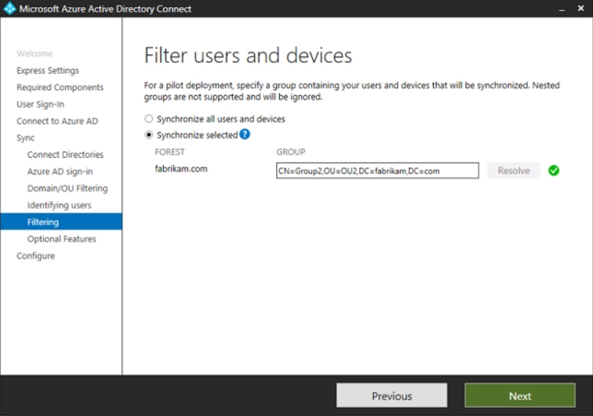 You are configuring synchronization between fabrikam.com and an Azure AD tenant.