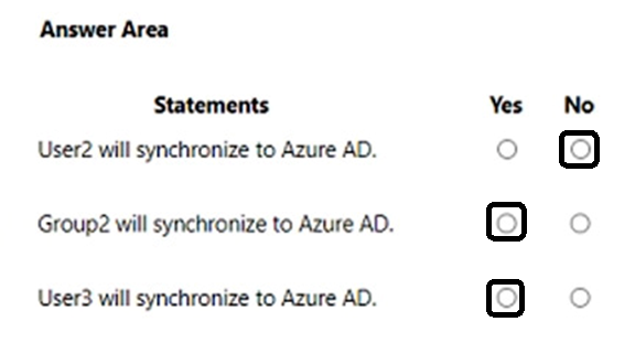 You configure the Filtering settings in Azure AD Connect as shown in the Filtering exhibit. (Click the Filtering tab.)