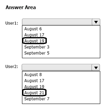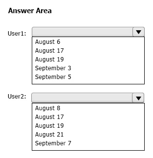 By which dates will User1 and User2 be forced to complete their Azure MFA registration? To answer, select the appropriate options in the answer area.