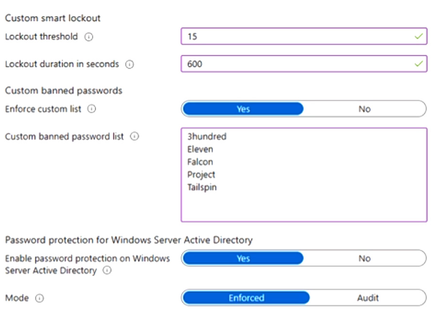 Azure AD Password Protection is configured as shown in the following exhibit.